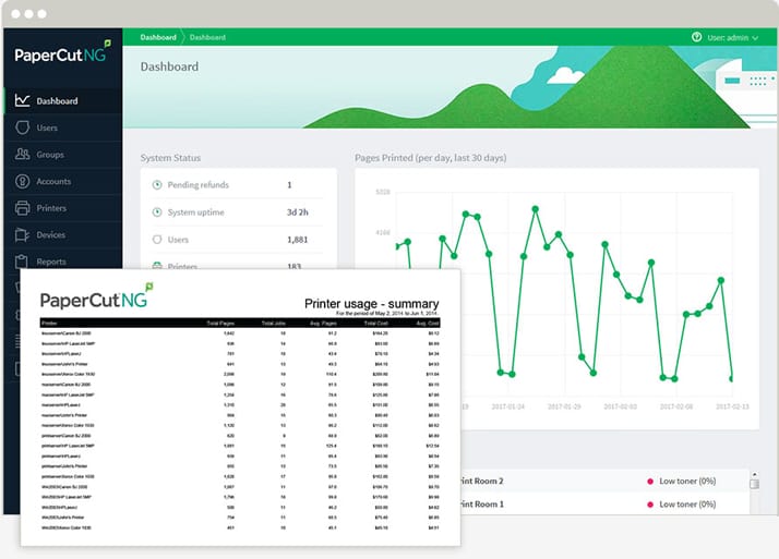 Waste reduction and cost control is not about using a stick, it’s about subtly changing user behavior (a stick may help!). PaperCut is packed full of features such as encouraging duplex printing, implementing reasonable usage quotas, and full pay-for-print and print chargeback policies.